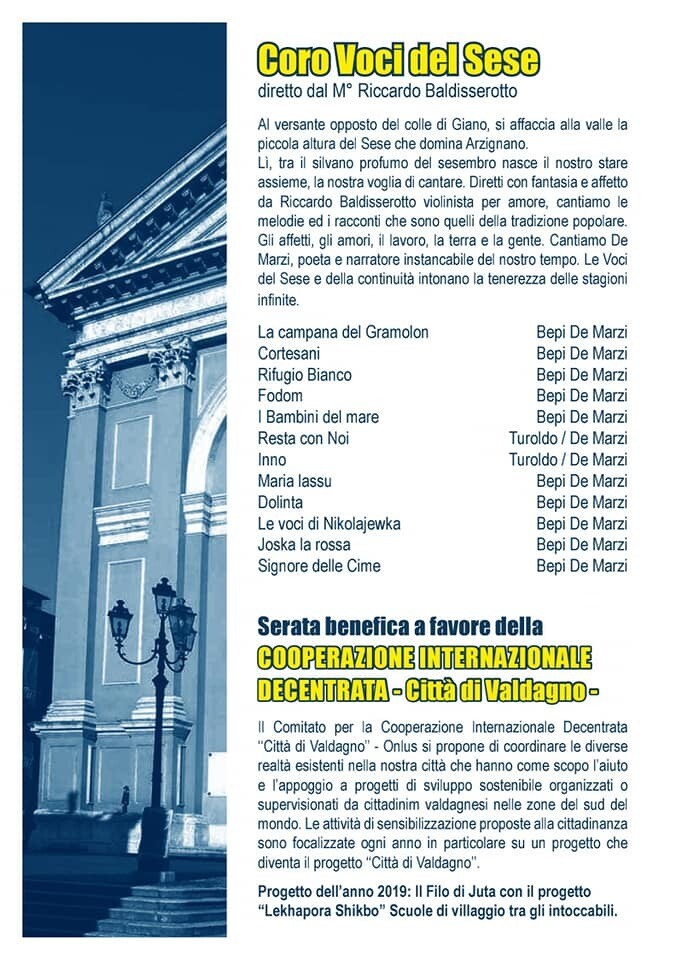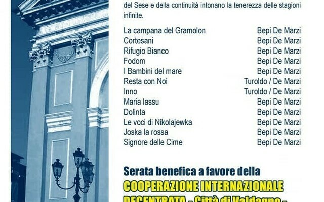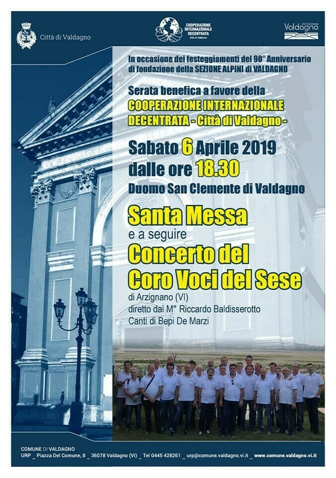 In occasione dei festeggiamenti del 90° Anniversario di fondazione della sezione ALPINI di Valdagno, serata benerfica a favore della COOPERAZIONE INTERNAZIONALE DECENTRATA -Città di Valdagno